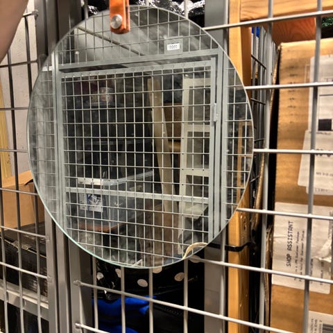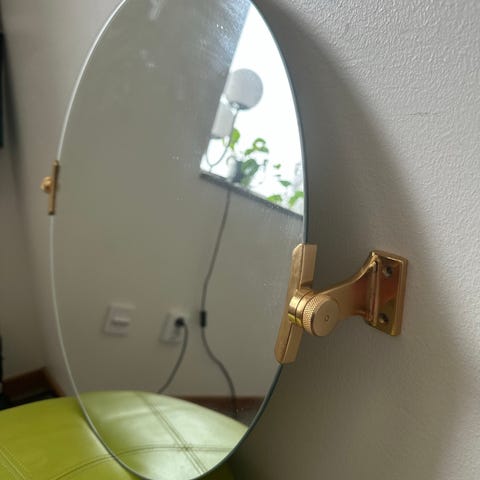 2 Mio rund spegel med metall och läder