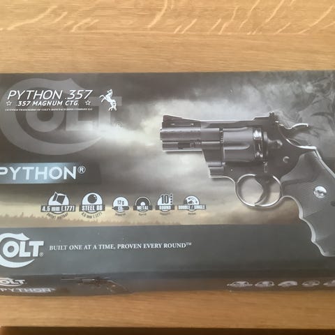 Full fungerande airsoft pistol med sin fulla förpackning och dess innehåll..