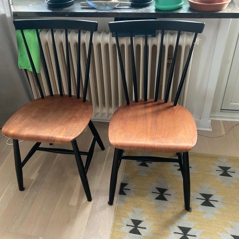 Pinnstolar i teakfanér, Hagafors Möbler, 1950/60-tal