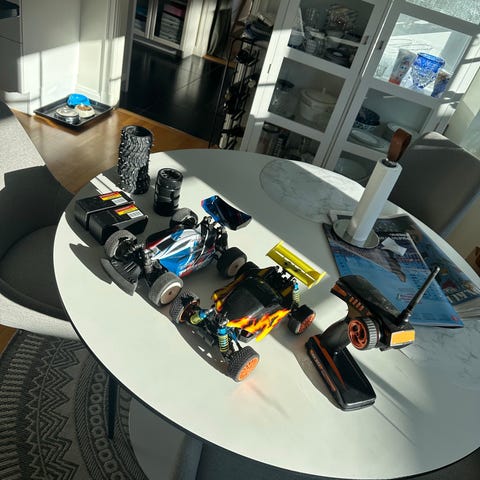 Bil,sändare, laddare, batteri.