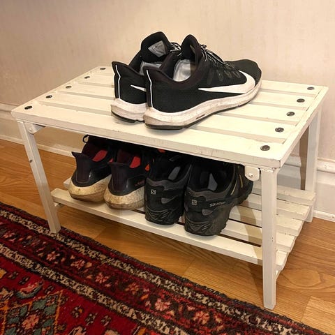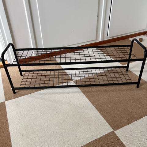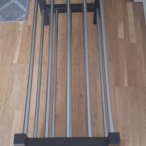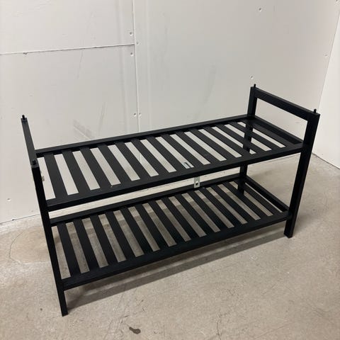 Svart skohylla med rostfritt bredd 78 cm höjd 31 cm