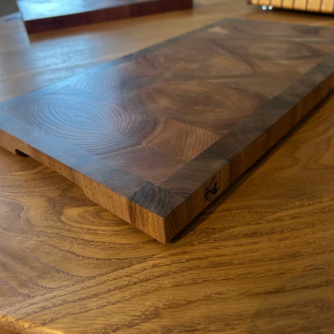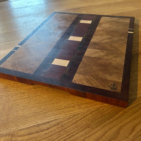Piano skärbräda, unik, gjord av ek, valnöt och björk.