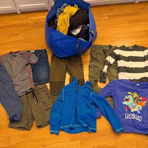 Säljer 3 par tröjor i stickad modell, den gråa tröjan är i storlek 134/140 och den två andra är i storlek 146/152. Säljer även en rutig skjorta med blåa chinos byxor. Byxan är i storlek 140 och skjortan i storlek 146. Finare i verkligheten än på bilden (gammal telefon). Säljer 50 kr per plagg eller 200kr för allt.