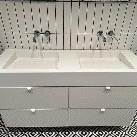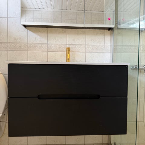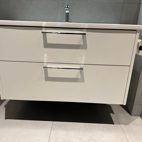 Kommod med två handfat och bra förvaring inklusive två blandare. 120x45x55