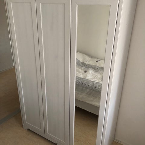 Fin garderob målad i jotun matta färg teal står i dag på reglar då vi tänkte vi skulle satt på en list nedtill men för någon som inte har lutande golv vill man nog sätta på ben istället så vi har låtit det var