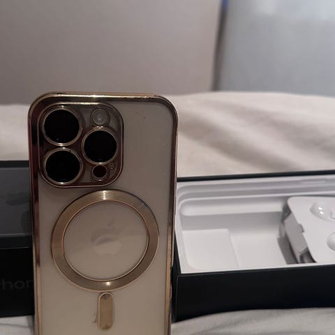 En iPhone 14 Pro i lila i fint skick säljes. Batterihälsa 86%.128 GB.