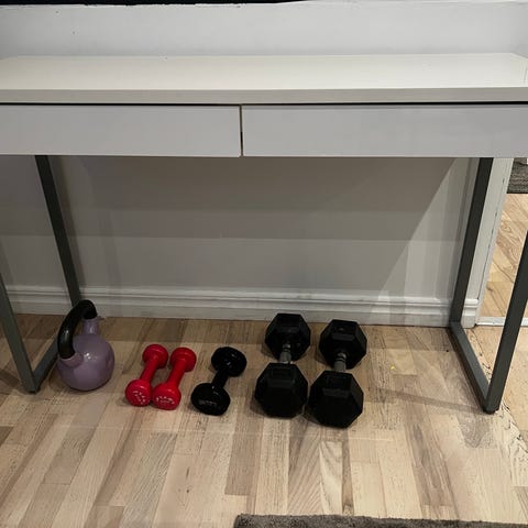 Jätte väcker sminkbord med många hyllor. Jag älskar den men jag beställde utan att titta på måttet. Jag köpte det för 1800+ 600 montering
