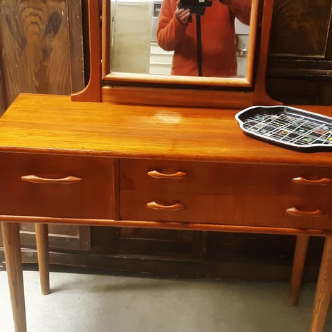 Säljer ett fint nätt retro sminkbord från 1960-talet med tillhörande pall. Spegeln går att fälla ner eller ta bort helt.