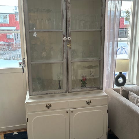Äldre charmigt rustikt skåp/ vitrinskåp i två delar.