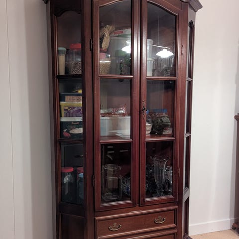 Tvådelat vitrinskåp i masurbjörkfanér