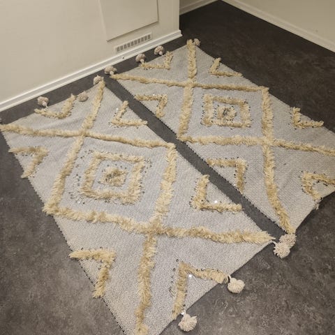 Helt ny äkta Marockansk Berber Beni Ourain ull hall matta