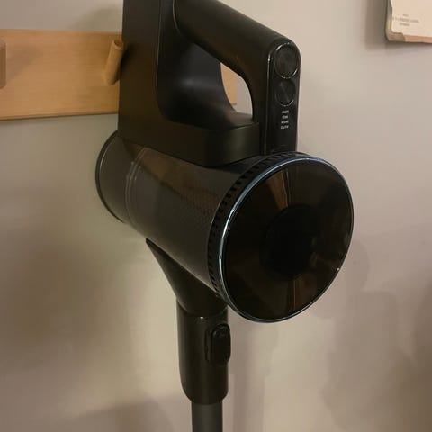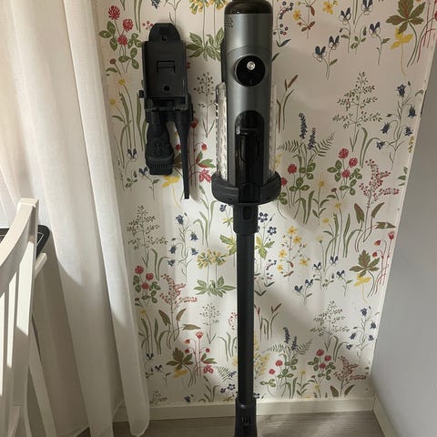 Wilfa sladdlös skaftdammsugare i svart utförande. Modellen är en batteridriven stående dammsugare med motorenhet högst upp och avtagbart rör. Dammsugaren har ett motordrivet munstycke med LED-belysning framtill för bättre sikt på golvet. Till dammsugaren hör flera tillbehör, bland annat väggfäste, olika munstycken och förlängningsrör, vilket gör den lämplig för rengöring av både golv, mattor och svåråtkomliga ytor som hörn, lister och möbler.