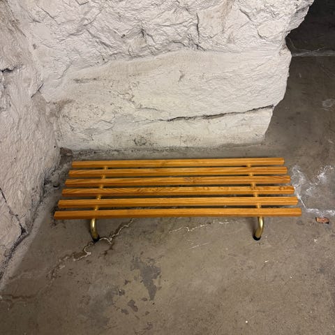 Stor och stabil skohylla i trä och metall – mycket fint skick