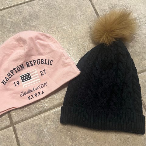 Sälja två mössor i stl 52/54 för 50kr. Hämtas nära Odenplan.