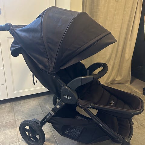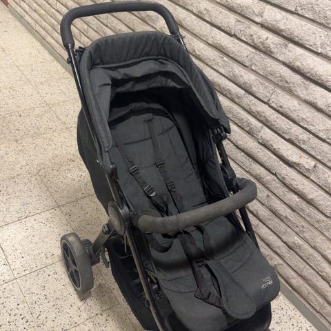 Näst intill oanvänd sittvagn. Ryggstödet är fällbart till liggande läge. Mugghållare.