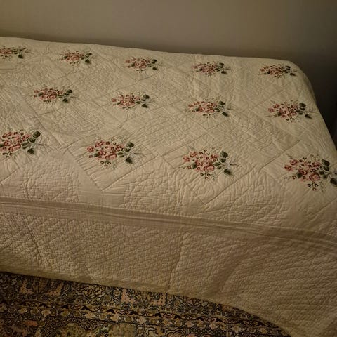 Ett mörklila överkast från IKEA, modell Karit. Mått: 260x280/ + 2 örngott 40x65 cm + förvaringspåse. Kan tvättas i maskin i 40 grader. I nytt skick, används sparsamt.