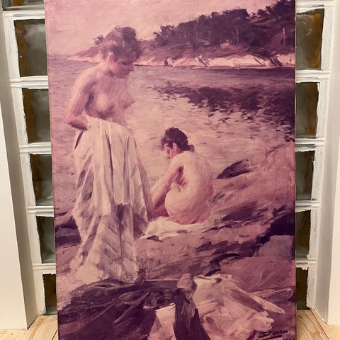 2st tavlor med kvinna i dalafolkdräkt i svarta ramar, Zorn kopior