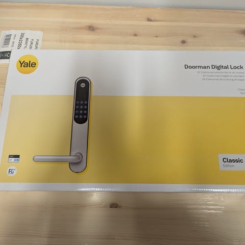 Yale Doorman elektroniskt dörrlås. Låset har kodpanel och handtag integrerat i en enhet för montering på ytterdörr. Det är avsett för nyckelfri låsning och upplåsning via kod eller andra kompatibla lösningar beroende på version och tillbehör. Passar som ersättning för traditionellt dörrlås där man vill ha elektronisk låsfunktion.