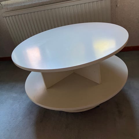 Ett vitt bord med en extra hylla under bordsskivan. Perfekt som soffbord eller sidobord.
