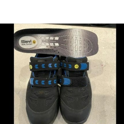 Jogging/arbetsskor med stålhätta och trampskydd, skon är gjord av något slags tjockt nät-aktigt tyg så att de andas bättre än någon annan sko. Helt oanvända.
