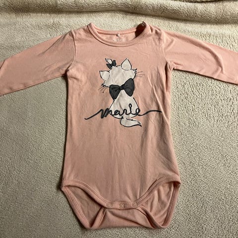 Lindex body för flicka i storlek 68. Plagget är tillverkat i bomull och har ett flerfärgat leopardmönster. Långärmad modell med tryckknappar i grenen för enklare av- och påklädning. Passar bebis i ungefär åldern 4–6 månader, beroende på barnets längd.