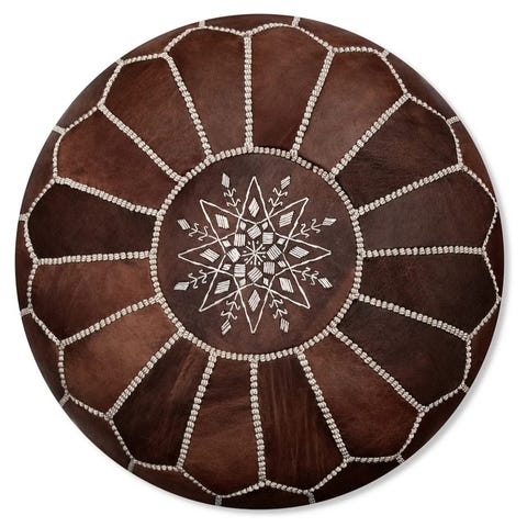 Handgjord sittpuff i skinn.