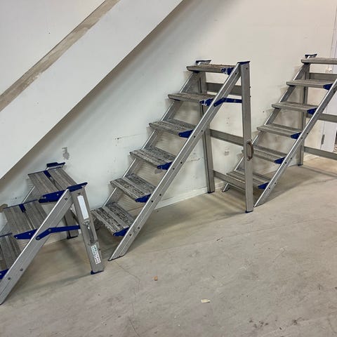 Trappa industristege stål blå ca 4 m längd 1200 mm bredd