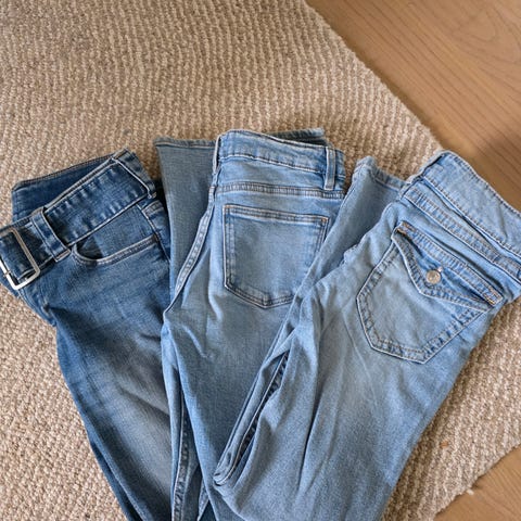 Säljer 3 fina jeansbyxor i bra skick. Kommer från ett rökfritt hem och är endast lite använda.