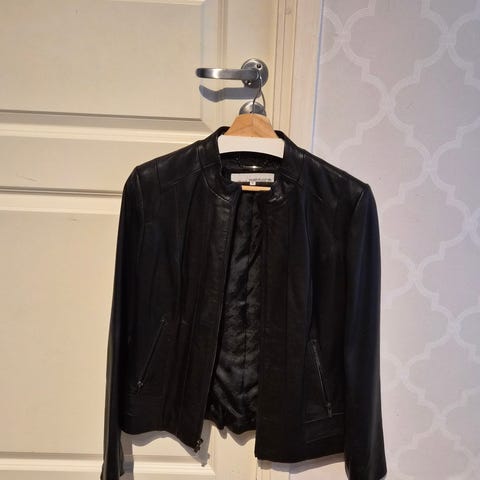 Saki skinnjacka för dam i svart färg, storlek M. Jackan är tillverkad i läder och har knäppning framtill. Modellen har krage med slag, flera fickor framtill samt längre passform som går ned över höften. Passar som ytterplagg vid vardagsbruk och kan användas under större delen av året beroende på väder och lager under.