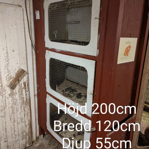 Flera stabila, handbyggda kaninburar säljes. Burarna är byggda av rejäla pallkragar och kan köpas enskilt eller som paket. Alla burar är modulbyggda och enkla att montera ner, transportera och sätta ihop igen.