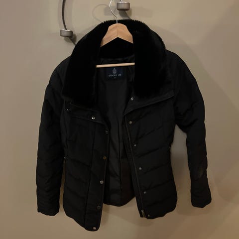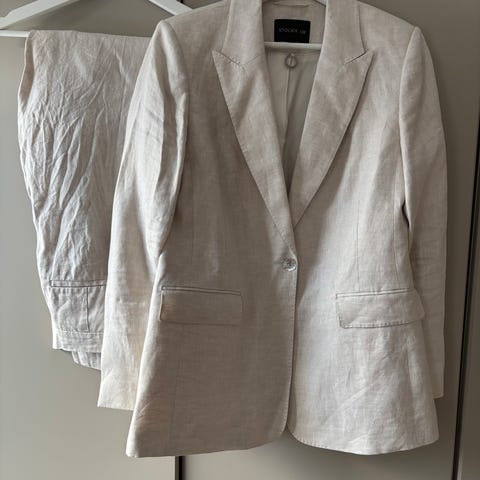 Stockh lm kavaj för dam i svart färg, storlek 38. Klassisk modell med krage och knäppning framtill. Passar till exempelvis kontor, vardag eller mer uppklädda tillfällen. Tillverkad i vävt tyg med fickor framtill och helfodrad insida. Finns även kostymbyxor till, se separat annons.
