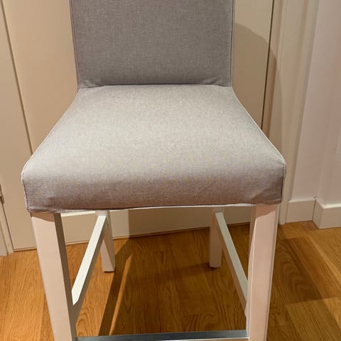 2 st Barstolar IKEA Bergmund, Orrsta ljusgrå klädsel.