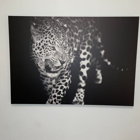 En stor tavla med Afrikanskt motiv gjord av konstnären Bandula Fernando.