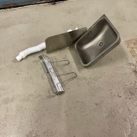 Diskho i rostfritt stål. Rektangulär form med rundad, djup ho och avlopp i mitten. Monteras infälld i bänkskiva. Passar exempelvis kök, tvättstuga eller verkstad där en tålig ho i metall behövs.