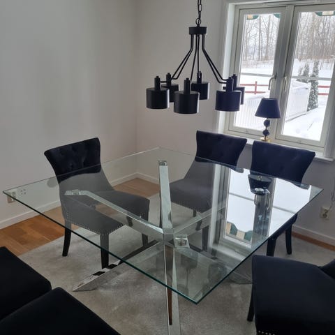 Matbord av glas. Inga repor eller skador, haft skydd över och väldigt fin. Säljs pga flytt.