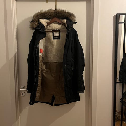 Didriksons vinterjacka för dam i storlek 36. Jackan är svart och tillverkad i polyester. Modellen har huva med syntetpäls, hög krage och hel dragkedja framtill med skyddande vindslå. Fickor framtill med lock och knappstängning. Längre modell som går ned över höfterna för extra täckning. Passar som varm ytterjacka under kalla vinterdagar.