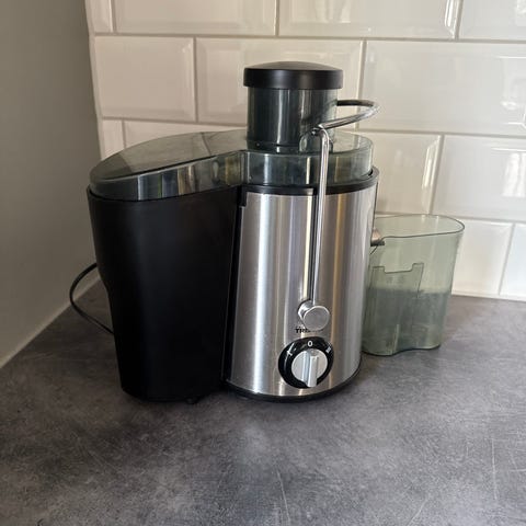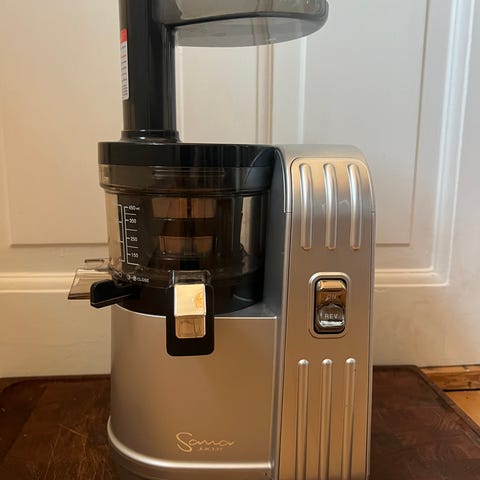Severin juicepress i rostfritt stål och svart plast. Maskinen har ett metallfilter och rivskiva för effektiv juiceutvinning samt en separat behållare för fruktkött. Utrustad med vred på framsidan för val av hastighet. Passar för att göra juice av frukt och grönsaker i hemmet. Avtagbara delar för enklare rengöring.