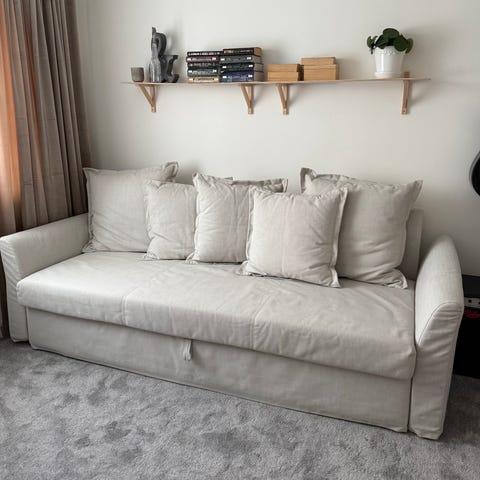 IKEA Holmsund 3-sits bäddsoffa, färgen har utgått men man kan se soffan på ikeas hemsida. Se mått på bild. 140 cm liggyta.