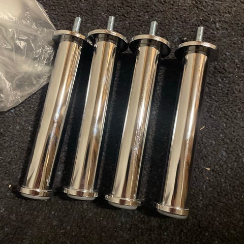 Möbelben i trä med tillhörande skruvar/beslag, lämpliga som ben till möbler i trä.