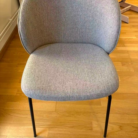 Jysk stol. Matstol KOKKEDAL sammet grå/svart Stolen har grå, stoppad sits och rygg med quiltad baksida samt svarta metallben. Passar som matstol eller extra sittplats i vardagsrum, sovrum eller hall.