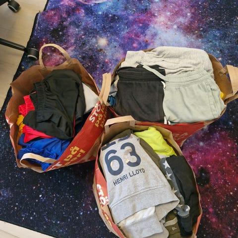 plagg, huvudsakligen tröjor och överdelar. Passar vardagsanvändning, skola och fritidsaktiviteter för barn i motsvarande storlek. Dom flesta är 6-7 år , ngn 7-9 år