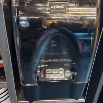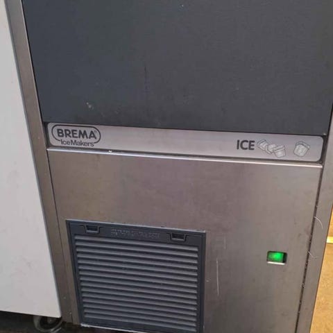Severin ismaskin i bänkdiskmodell med hölje i rostfritt stål och svart ovansida. Maskinen har lock med fönster för insyn i isbehållaren och en invändig korg för isbitar. Baksidan har ventilationsgaller och elanslutning. Lämplig för användning i kök eller på bord för tillverkning av isbitar vid vardagsbruk eller vid servering.