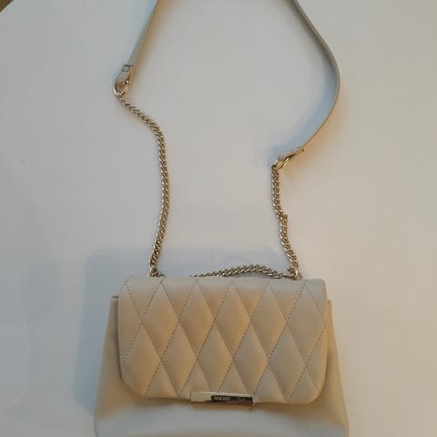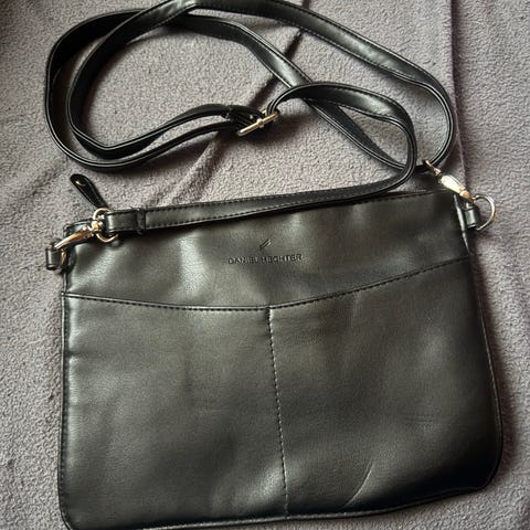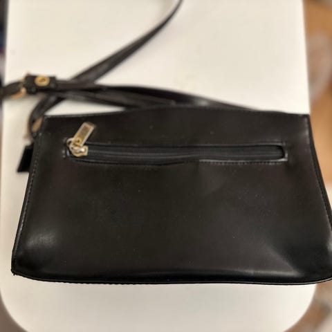 Säljer en elegant och tidlös axelväska från Tamaris i svart färg. Väskan har en snygg, strukturerad yta, guldfärgade detaljer och justerbar axelrem som gör den bekväm att bära både till vardag och finare tillfällen.