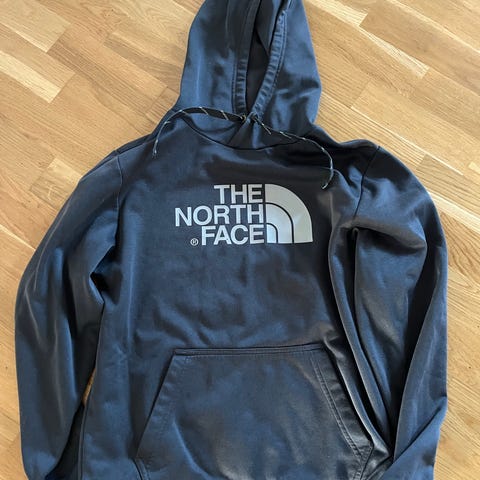 North Face hoodietröja med dragkedja och fickor. En fläck i slutet av ena ärmen, annars i mycket bra skick. Supervarm och bekväm. Passar storlek S/M (etiketten saknas). Bredd under ärmarna 44 cm.