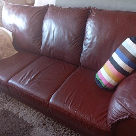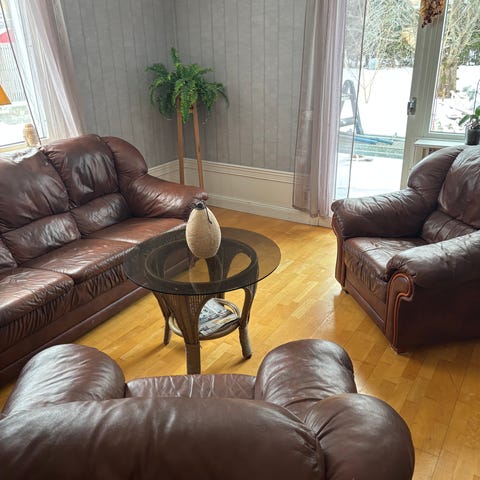 Svart skinnsoffa