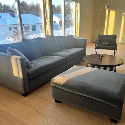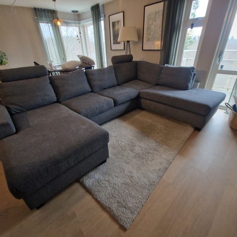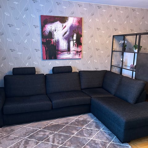 En svart divan soffa i ett väldigt bra skick, den är 3m bred och 2m djup vid divanen. Den har även 2st nackstöd och utkörning går att lösa, men går såklart även bra att komma och hämta/kolla på den själv. Har du några funderingar så är det bara att höra av dig!