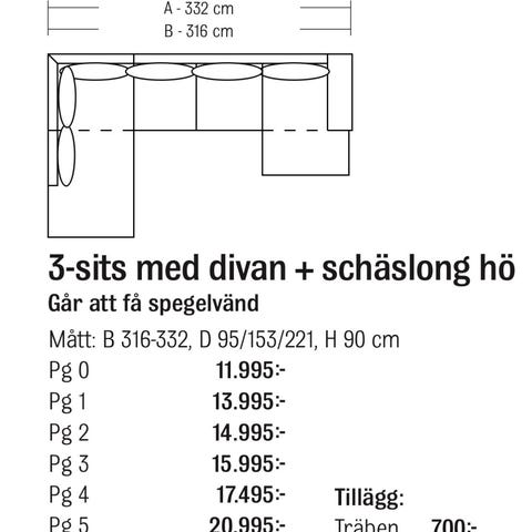 Säljer vår soffa då vi flyttat och inte vill ha divanen på den sidan den är. Den är drygt 4 år gammal och i fint skick. Sittdynan på divanen är något nedsutten men i övrigt har den inga skavanker.