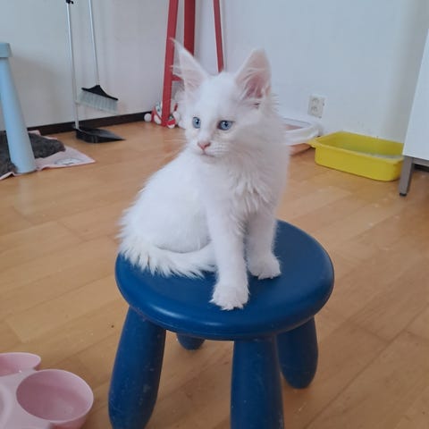 Vit Maine Coon hona Odd eye