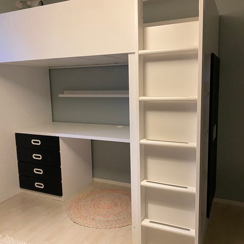 IKEA loftsäng med skrivbord och förvaring vit rosa