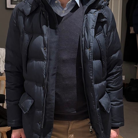 Svart vinterjacka i dun. Ser tjock ut men räknas som "lättvikts" jacka.